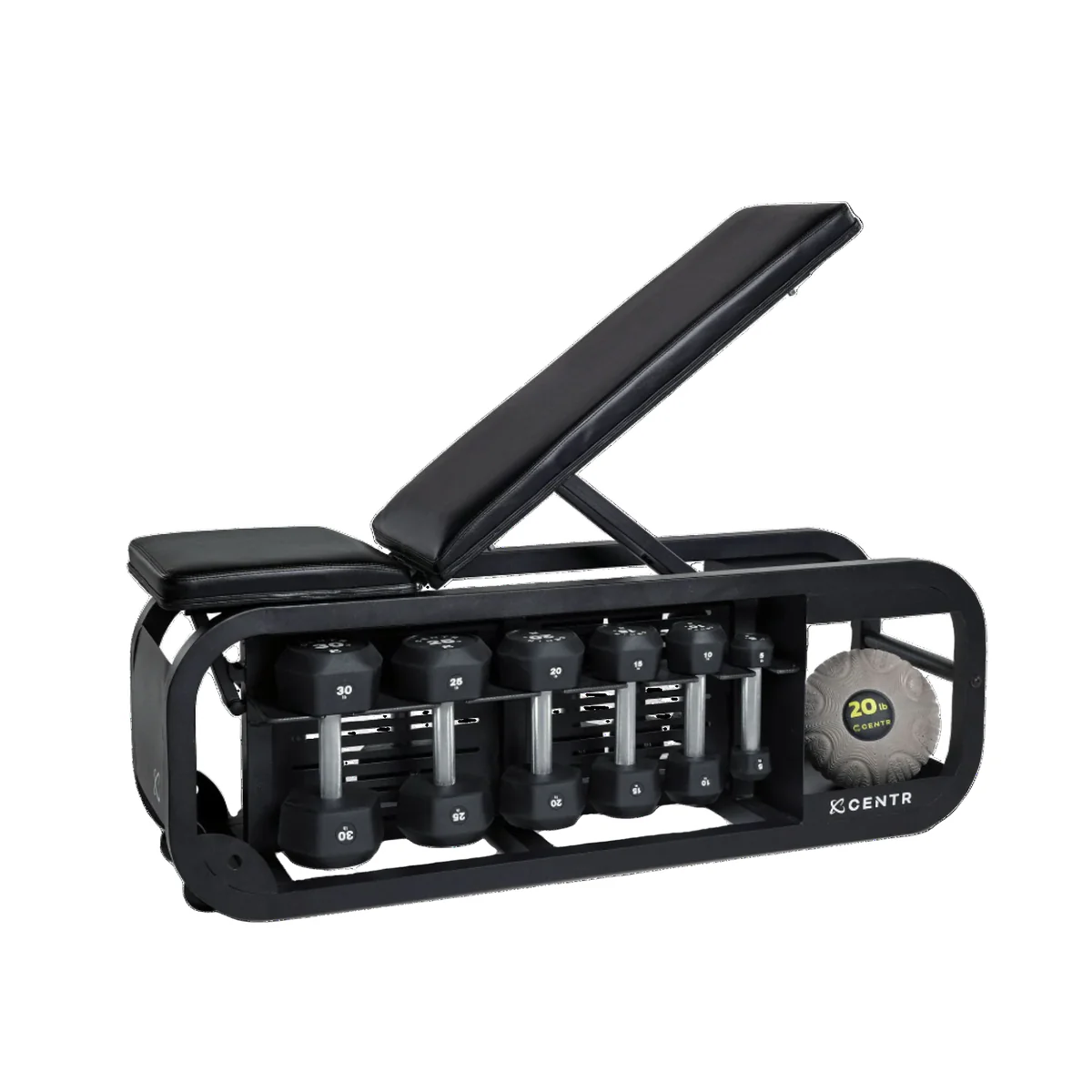 Concepută pentru confort, vei găsi spațiu de depozitare pentru 6 perechi de gantere, plus spațiu pentru un kettlebell, benzi elastice sau instrumente de recuperare sub pernele confortabile căptușite. Cu o amprentă de doar 114 cm L x 38 cm l x 46 cm H, este o opțiune ideală pentru spațiile mici și o completare perfectă pentru sălile de sport compacte de acasă de la Centr.